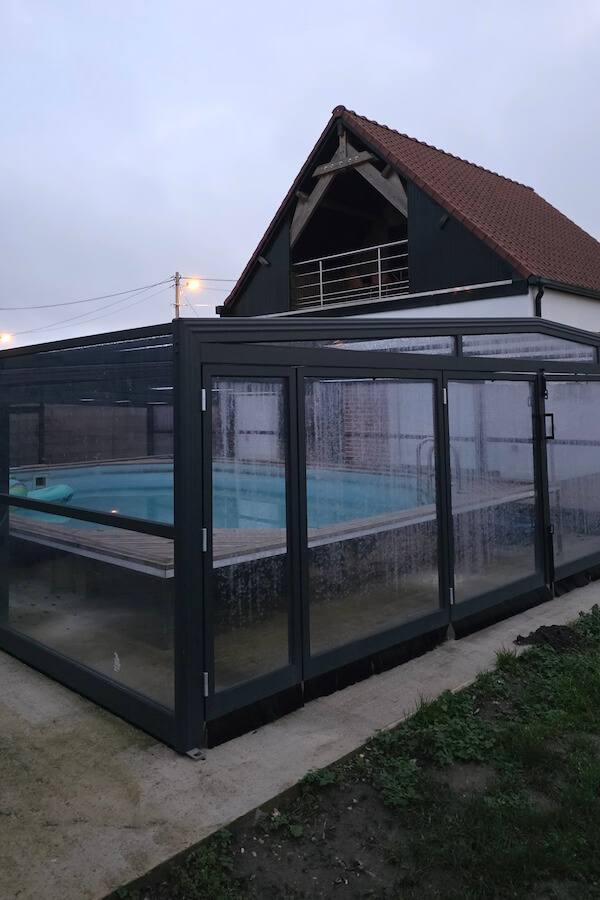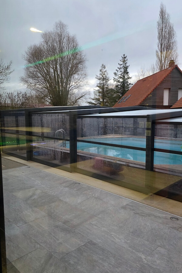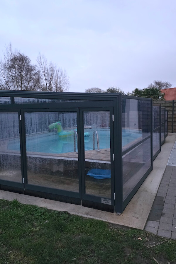A l'extérieur, une terrasse donnant sur une piscine chauffée et couverte DISPO DE MAI À NOVEMBRE